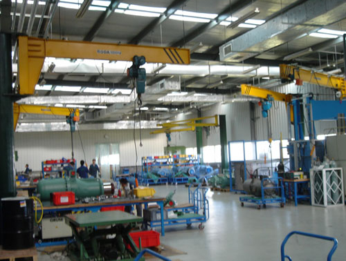 立柱式旋臂吊在旋转范围内产生扇形工作面内,可有效的进行工件的吊卸工作。室内室外多种应用场合均可使用,即使在净空高度很小的室内同样能提供大的提升高度。立柱可用化学膨胀螺栓直接安装,也可以使用混凝土预埋地脚螺栓安装